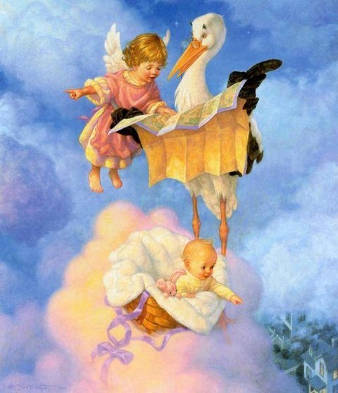 Милая моя мамочка! Ты не беспокойся, я тут не один, нас тут тысячи, миллионы, не сосчитать. И все ждут своего аиста. Некоторые малыши такие нетерпеливые, так сильно хотят поскорее попасть к своим родителям, что упрашивают залётных аистов отнести их к ним.