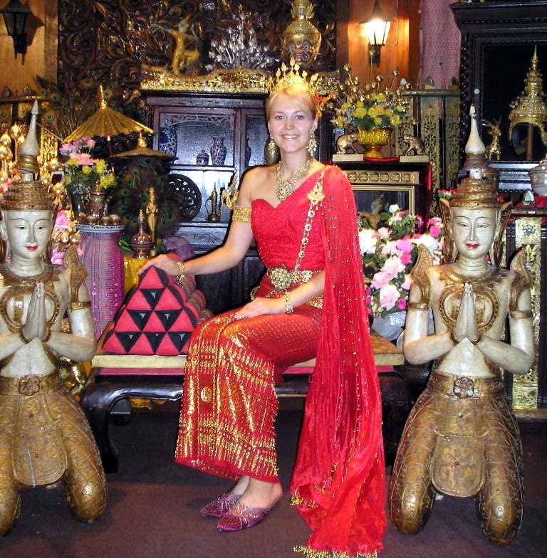 Там я выбрала национальный наряд, правда, покроя королевской семьи:) Не совсем народный:)