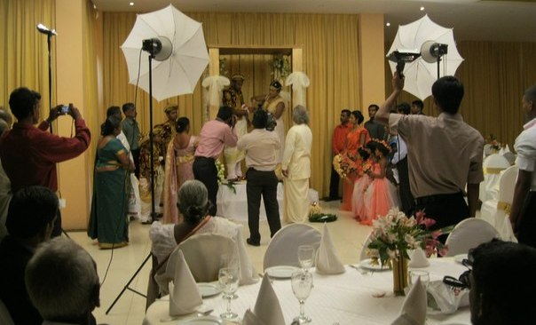 В странах мусульманского мира снимать свадьбы не возможно, там все происходит немного по-другому. Невесты с закрытыми лицами в окружении подруг и родственниц в закрытых залах, жених с другими мужчинами-гостями - в другом. Когда заходит жених, невеста и все женщины закрывают лица накидками...