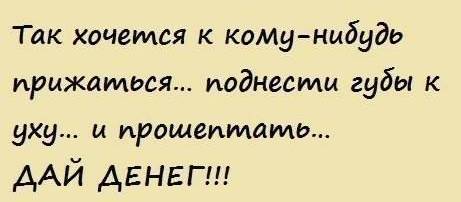 Аааааа, так вот в тот день, когда я впервые посчитала всех бабок по пути на работу, мне примерно в обед сообщили, что выписали к новому году небольшую премию по профсоюзной линии. Потом я позвонила папе и он попросил зайти к нему, и тоже подкинул мне немного деньжат. Потом еще несколько раз считала бабок и были непредвиденные, пусть и небольшие, но поступления денежек. Главное как всегда верить, быть в хорошем настроении и не зацикливаться на результате!