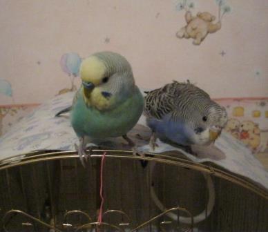Он так трогательно заботится о ней. Кормит ее. Показывает ей "правила игры" в этой квартире, приглашает с собой полетать. Воспитывает Ее под себя. Когда она подрастет до брачного периода, у них будут попугайчата.