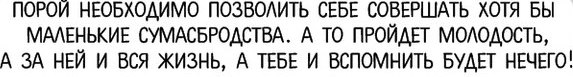 А если серьезно: а слабо посмеяться? Чего включать взрослость эту? Живем по заведенному кругу «дом-дорога-работа-дом». Ходим по закольцованному кругу. А взять и внести изменения в свои «многовековые устои»? И тогда психологический возраст может сильно отличаться от биологического.
