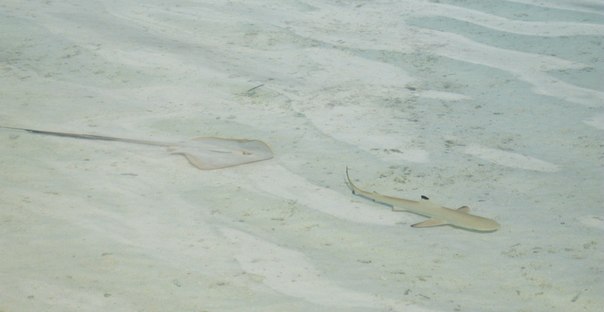 Вот мой коронный кадр - мимо моих ног проплыла рифовая акулка и за ней вдогонку скат-детеныш!