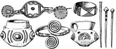 Та же ситуация и с найденными предметами обихода. Они тщательно вырезаны из костей мамонта, на них нанесены рисунки, но самое интересное - для их окраски использовали охру! А от получения охры один шаг к получению железа, которое возникает как побочный продукт при выжигании охры из сферосидерита (по-русски сферосидерит называется "кровавик") и болотной руды. Но если тогда в обиходе и было что-то железное, оно не могло сохраниться 25-30 тысяч лет в достаточно влажной владимирской земле. А вот отверстия в костяных бусинах отчетливо показывают, что их, скорее всего, сверлили чем-то металлическим. Только сверление металлическим орудием позволило бы изготовлять бусины в столь огромных количествах для обильного расшивания ими даже детской одежды (всего в тамошних раскопах найдено более 10 тыс. бусин, т.е. древние наладили их массовое производство).