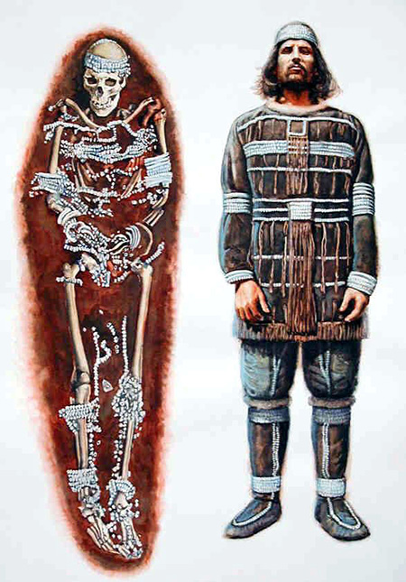 Реконструкция облика и одежды захороненного мужчины показывает, что он выглядел вполне импозантно с точки зрения современной эстетики и мог бы сниматься в боевиках в роли главного положительного героя: