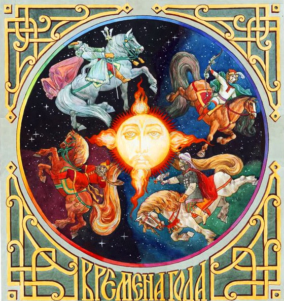 Эти четыре проявления славянского бога солнца - Коляда, Ярило, Купайла и Световит - соответствуют четырем астрономическим временам года - зиме, весне, лету и осени.