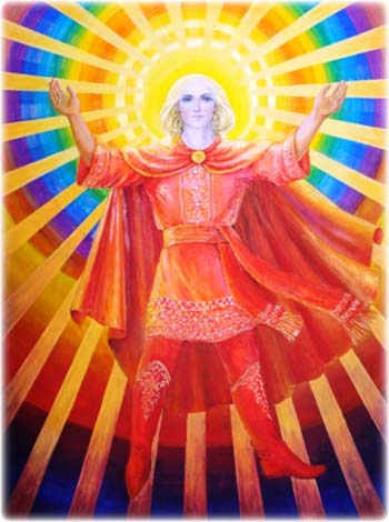Сварог – основа материального мира. Его символ – Сварогов Квадрат – имеет восемь лучей. Большее числовое значение приписывается лишь Ладе, ее число – девять. Бог Сварог всегда изображался, как могучий богатырь в самом рассвете лет (около 40). В мирное время он надевал простую льняную рубаху, закатывал рукава и брал в руки свой огромный молот, которым был выкован мир. В дни войны этот бог облачался в темно-лазурные (либо багряные) доспехи и шел разить врагов света.