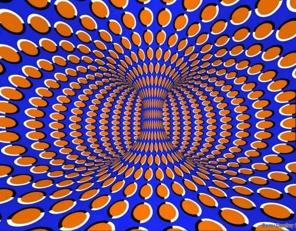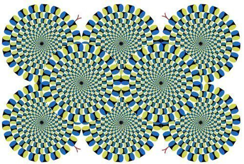 Эту иллюзию изобрел японский психиатр Акиоши Китаока. Он утверждает, что иллюзия неподвижна для спокойных, уравновешенных и отдохнувших людей. Если же иллюзия активно движется, то вам нужен отдых и сон в течение 8 часов. Ну, а если же иллюзия очень быстро движется, то вам срочно нужен… отдых в больнице.